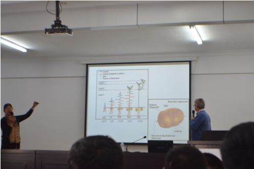 培訓(xùn)會(huì)上,Harrie先生對(duì)馬鈴薯規(guī)范化種植管理的重要意義進(jìn)行了深刻闡述,并就馬鈴薯各生長(zhǎng)周期內(nèi)易發(fā)、頻發(fā)的病蟲害及其防治措施與馬鈴薯種植、生產(chǎn)全程現(xiàn)代化管理等內(nèi)容進(jìn)行了講解,理論聯(lián)系實(shí)際,內(nèi)容詳實(shí)全面,得到了參訓(xùn)學(xué)員的廣泛認(rèn)可。培訓(xùn)全程為英語(yǔ)授課,為了使參訓(xùn)學(xué)員能夠真正聽得懂、學(xué)得會(huì),公司特聘內(nèi)蒙古農(nóng)業(yè)大學(xué)農(nóng)學(xué)專業(yè)教授進(jìn)行了全程翻譯。
