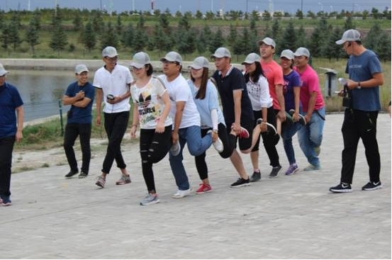 本次擴展訓練分別從德、智、體、美、勞五項趣味進行了才藝大比拼。三組人員分別進入各自的營地,將隊名、口號、隊歌寫在旗幟上規(guī)定時間內(nèi)展示給大家。令所有人都大跌眼鏡的是三組隊員的隊名如出一轍,完全一樣,他們都是—《戰(zhàn)狼隊》。隨后,戰(zhàn)狼三個隊展開了“肺活量大比拼”、“瞎子”背“瘸子”、“智能撲克傳遞”、“毛毛蟲速爬”、“燒烤比賽”等多個賽事。